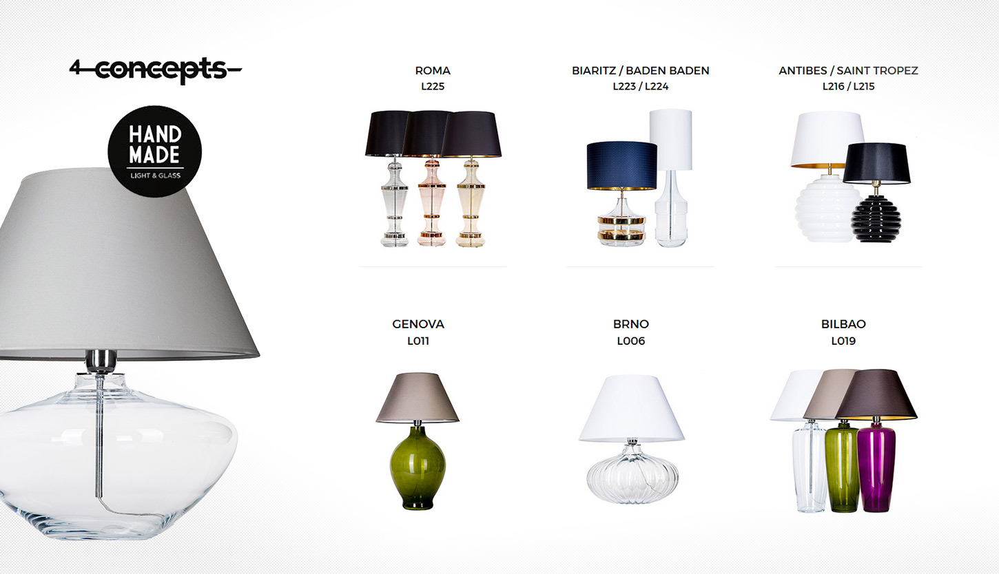 For 4 Concepts we devised a whole marketing campaign. That includes catalogues, product photos, website with an interactive online catalogue and an online shop. We also worked on their social media image.